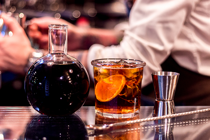 Cold brew coffee servito con scorza d’arancia