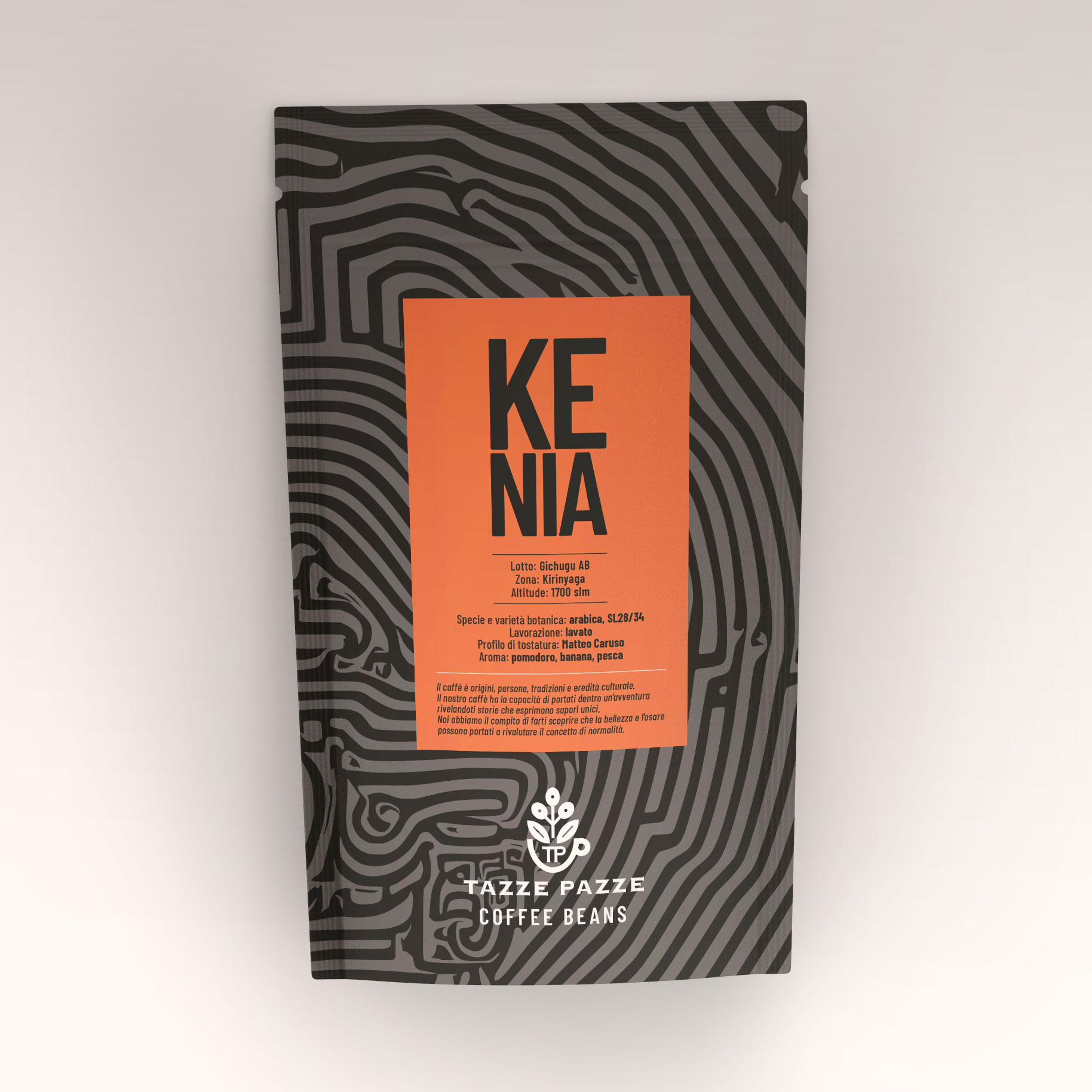 Questo lotto AB, con varietà SL28, SL34, Ruiru 11 e Batian, offre un profilo raffinato e complesso. In tazza si distingue per la sua freschezza brillante, note fruttate e agrumate, con sentori di pomodoro maturo, banana dolce e pesca succosa.